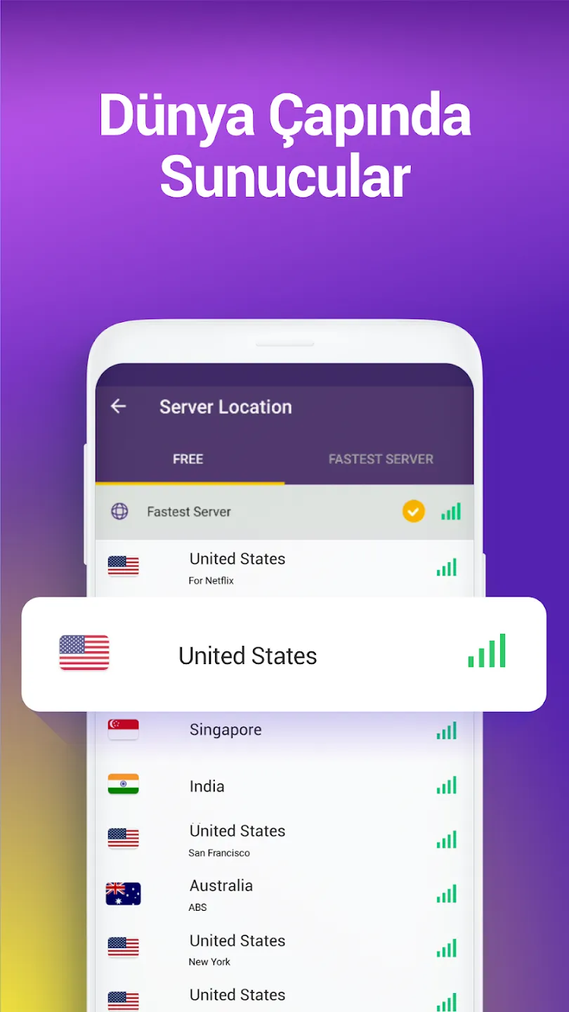 • 🌍 Çok sayıda ülkeye ait hızlı sunucu seçeneği