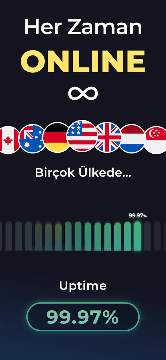 Sistem sizi otomatik olarak en hızlı Türkiye sunucusuna yönlendirir