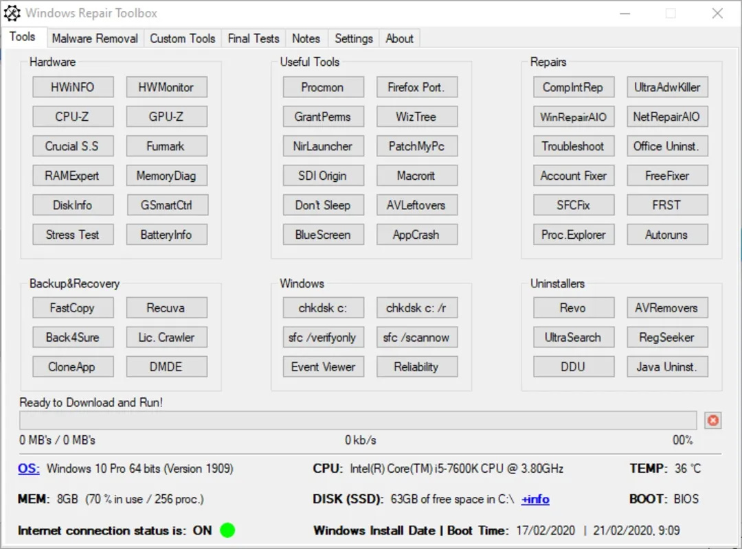 Windows Repair Toolbox indir: Windows Sorunlarını Teşhis Etmek ve Onarmak İçin Hepsi Bir Arada Araç